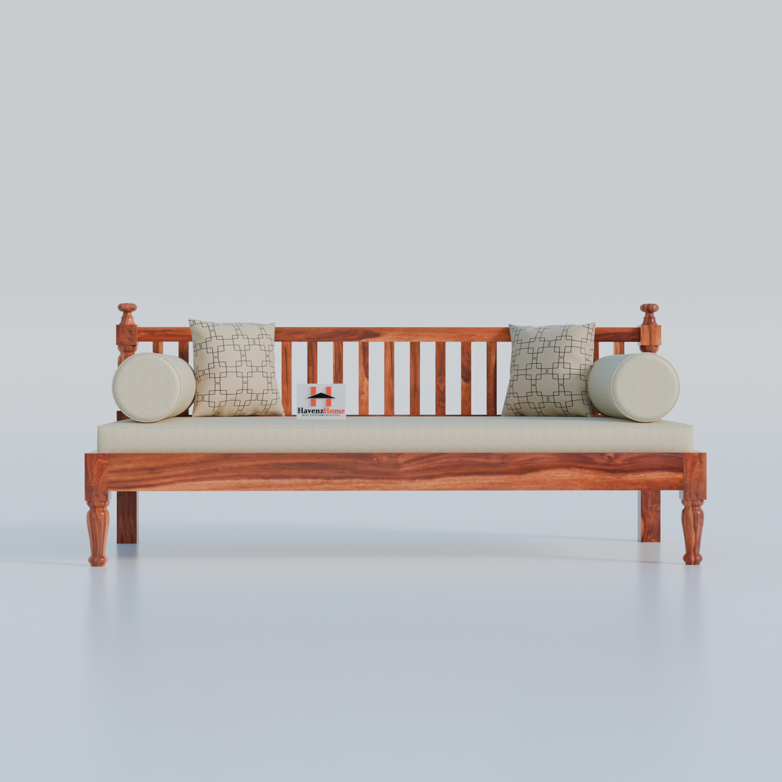Home Furniture Wooden Couch Diwan Sofa Settee for Living Room and Office | Three 3-Person Sofa | Art Deco, Sheesham Wood | Natural Teak Finish (Brown)